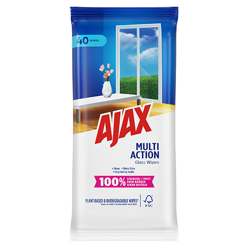 Ajax Multi Action lasinpuhdistusliinat tekevät lasipinnoista säkenöivän puhtaat viiruja jättämättä.